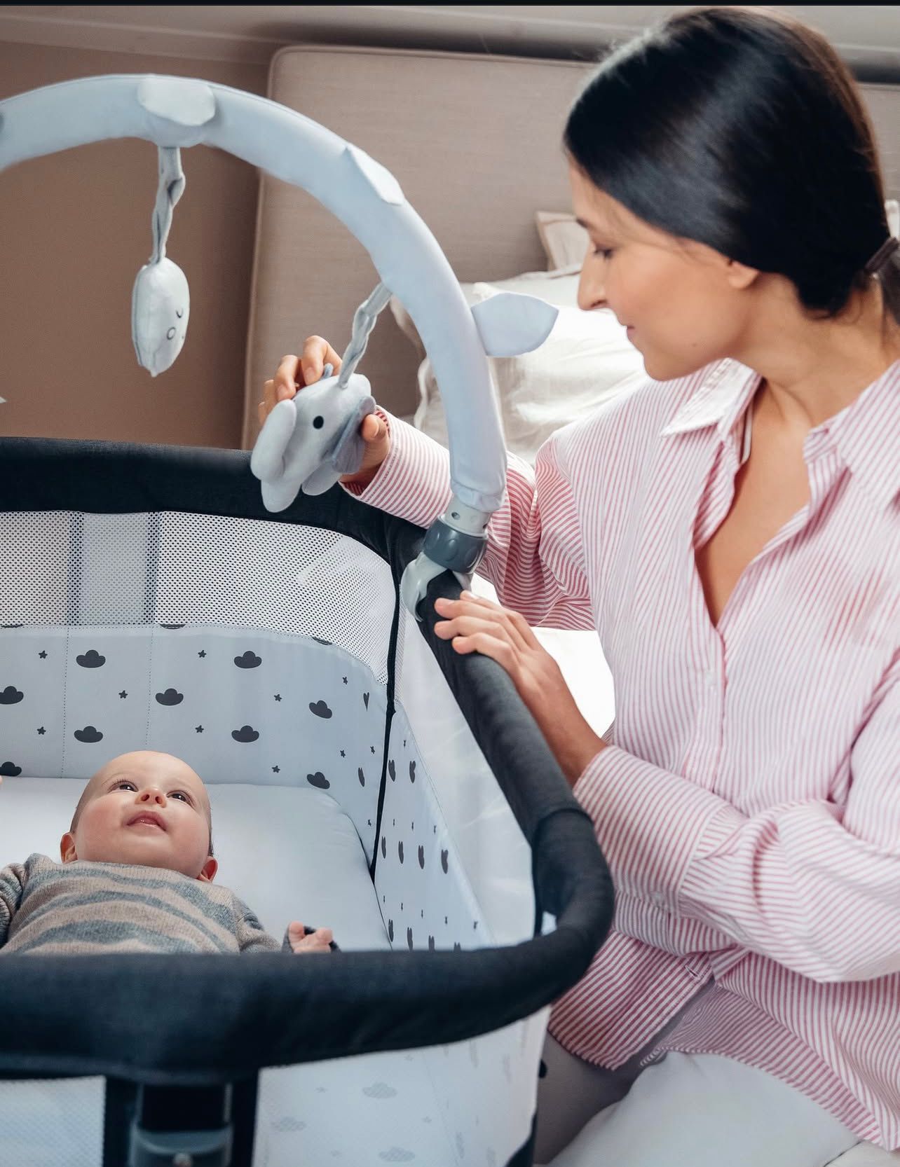 Kolevka dolazi sa: mrežicom za zaštitu od insekata i delom za presvlaku, udobnim dušekom za miran san. Dodatno, ispod kolevke se nalazi praktična ostava u kojoj možete odlagati pelene, odeću i druge potrepštine. Zahvaljujući točkićima, kolevka je lako pokretna, takodje ima mogućnost ljuljanja. Kada poželite stabilnost, jednostavno zakočite kolevku.